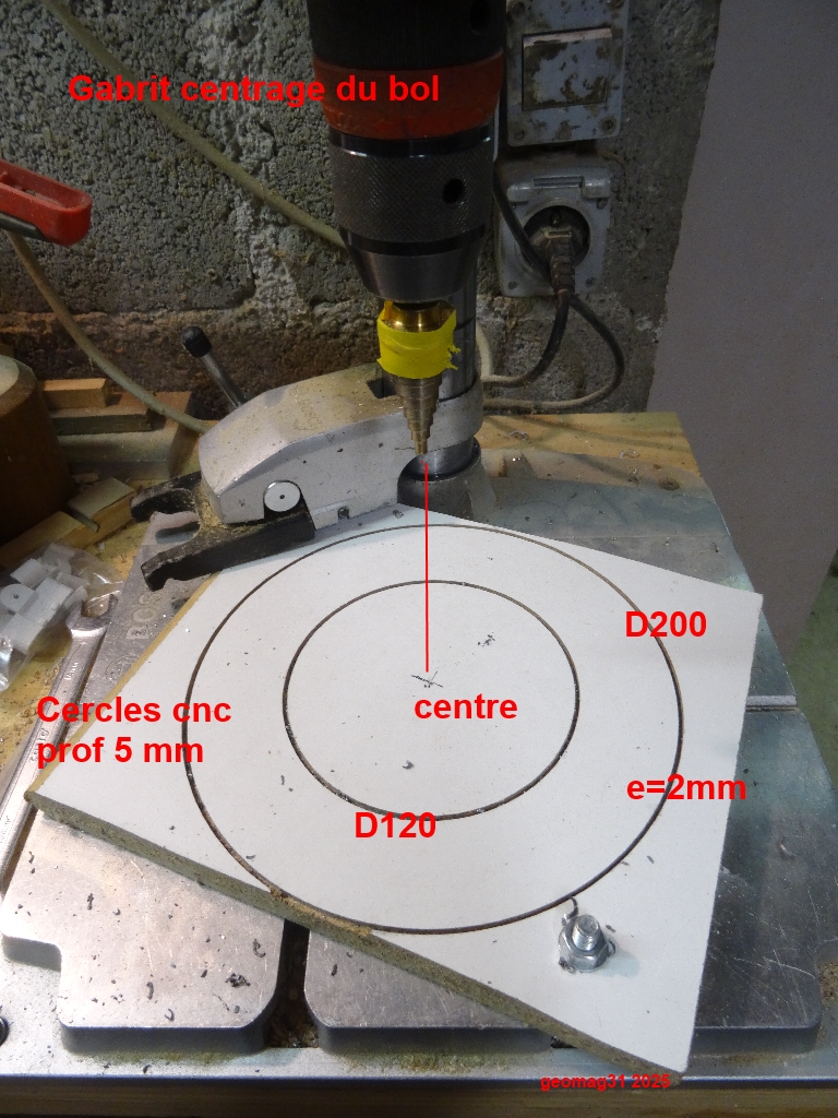 guide de percage pour élargir un peu le cercle gravé et bien maintenir