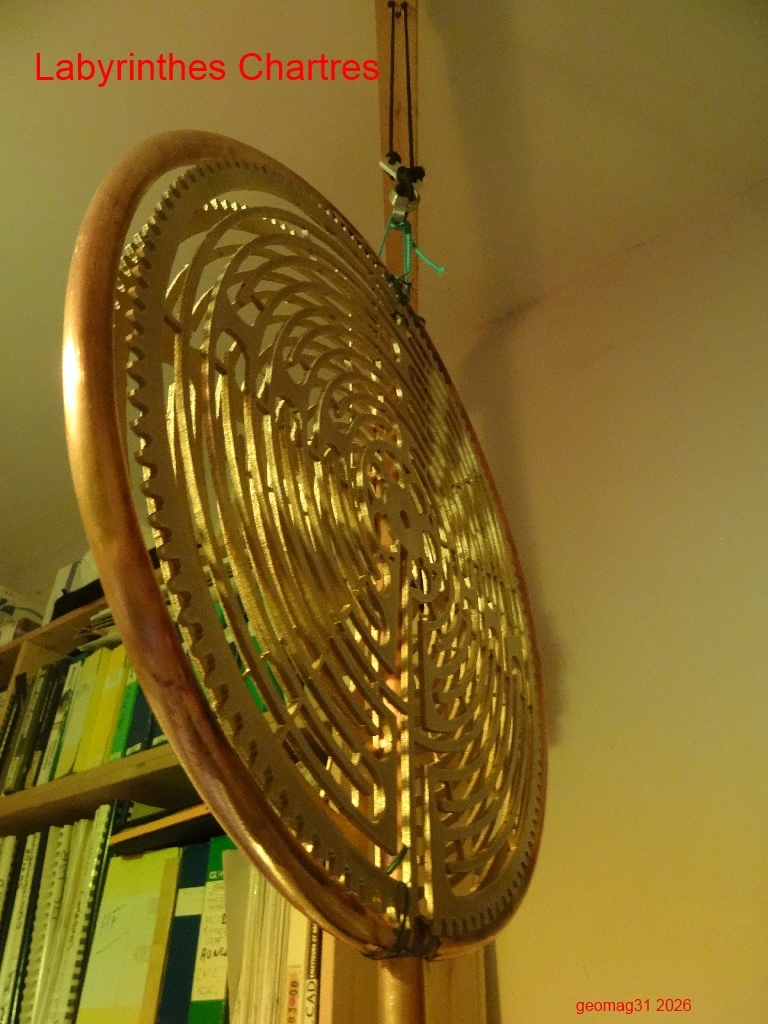 un labyrinthe "Chartres" découpé cnc dans du MDF3mm blanc Mélaminé