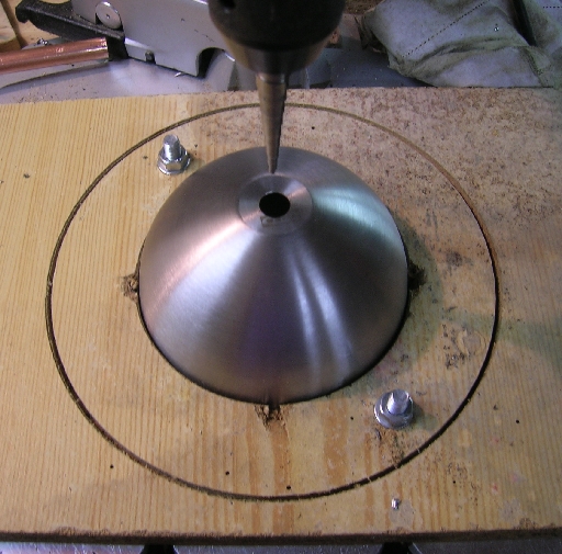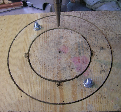 la perceuse à colonne avant de fixer la planche. Deux cercles de