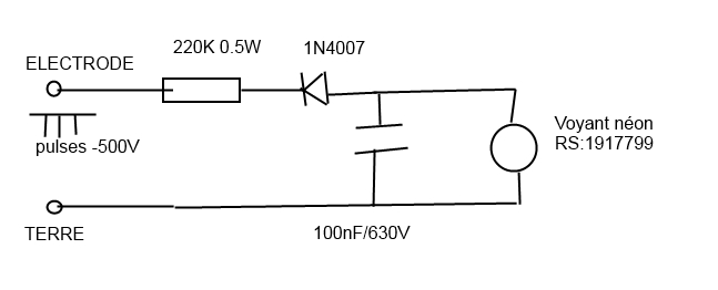 s'allume à 65V et comporte une résistance 1Mohms, il s'allume bien mais