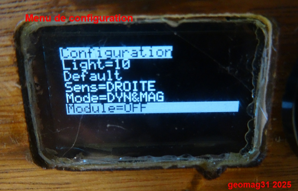 Le sélecteur en appui long (> 1sec) active le menu de configuration,