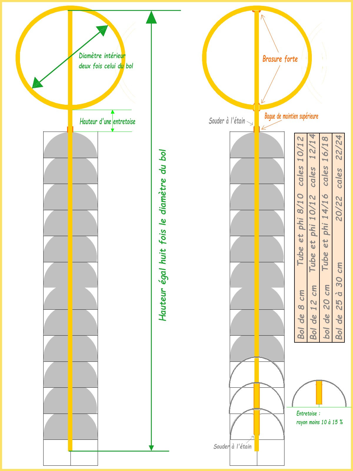 - un tube de cuivre de longueur= 8 x diamètre du bol